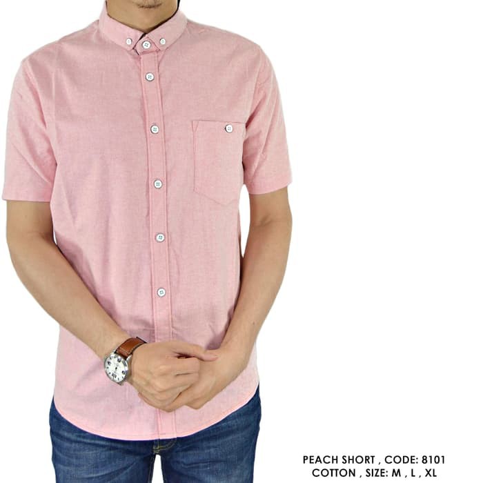 Baju Kemeja Polos Polosan Warna Peach Cowok Pria Seperti Di Foto M - Download