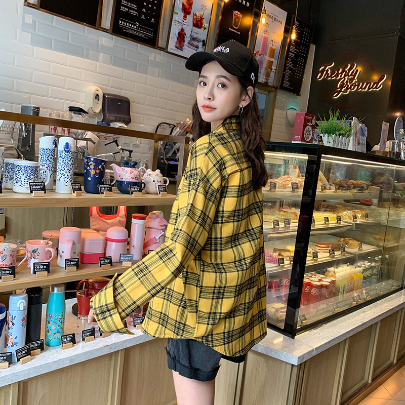 Kemeja 2019 Model Baru Kuning Merah Kotak Kotak Kemeja Jaket Musim Gugur Perempuan Harajuku Polo Shirt Wanita Imut Gaya Jepang Korea Atasan - Download