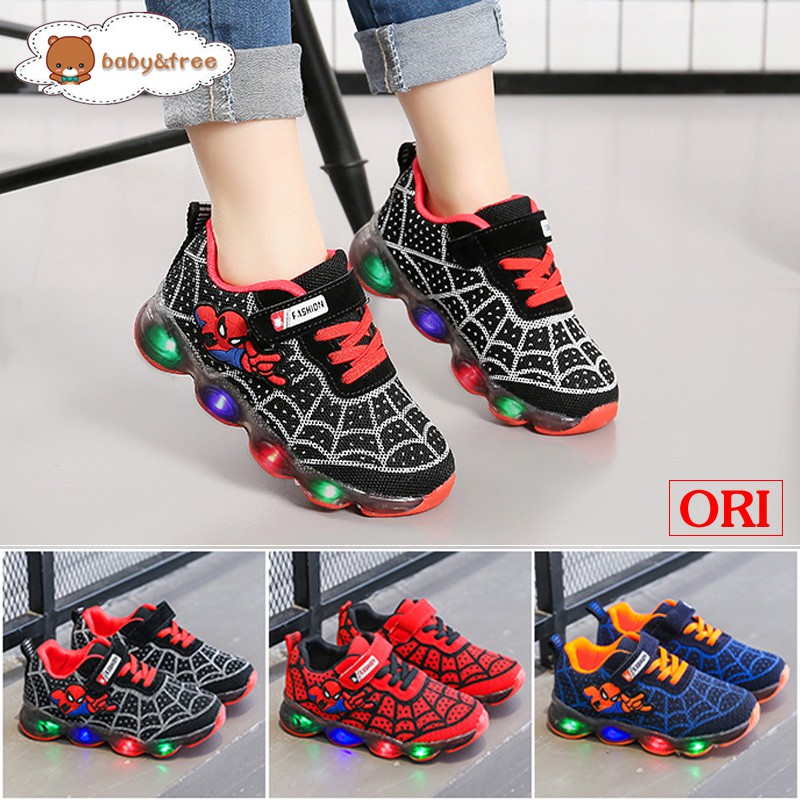 Bisa Cod Size 21 36 Spiderman Gambar Sepatu Anak Led Kartun Flash L6101 - Download