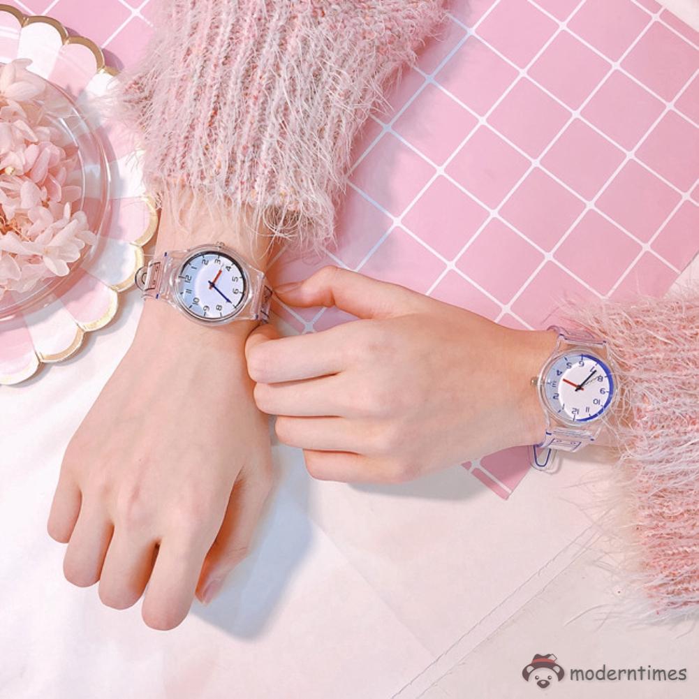 Jam Tangan Quartz Analog Dial Bulat Kecil Lucu Simple Transparan Untuk Wanita Leisure Moments Id - Download
