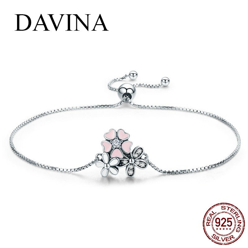 Gelang Perak Davina Cherry Bracelet 925 Sterling Silver Wanita Korea Unik Asli S925 Bunga Tangan - Download
