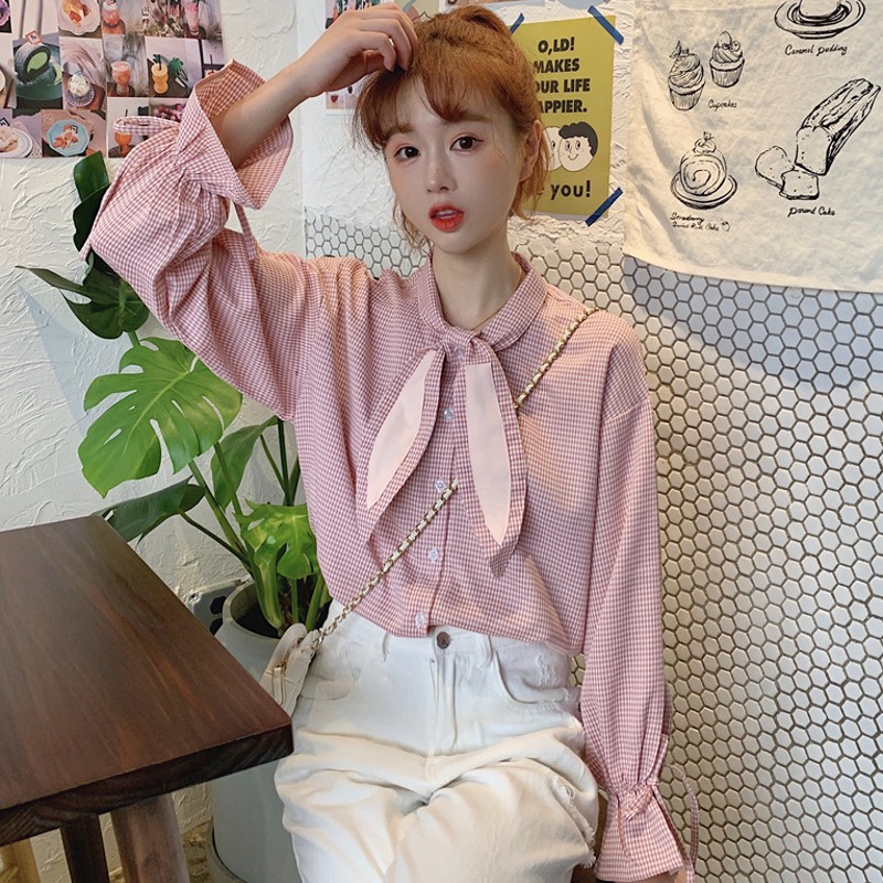 Inlisa Kemeja Model Longgar Lengan Panjang Motif Kotak Kotak Warna Pink Untuk Wanita - Download