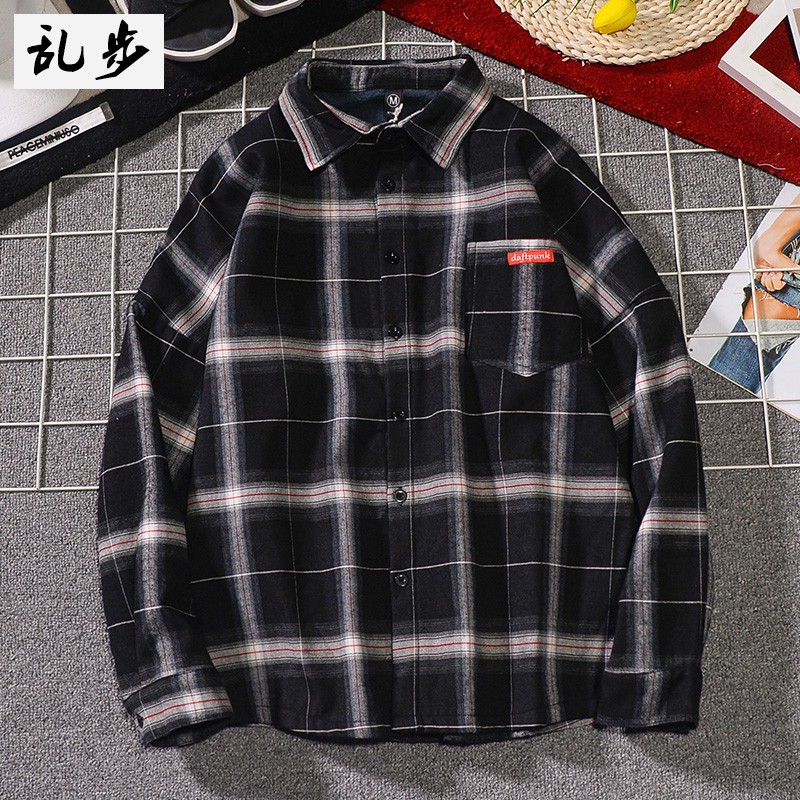 Kemeja Wanita Lengan Panjang Motif Kotak Kotak Warna Hitam Putih Ukuran Besar - Download