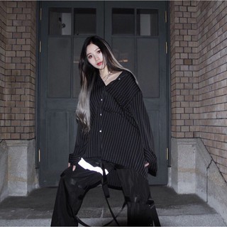 Yg Kemeja Wanita Dengan Model Ukuran Oversize Dan Motif Garis Garis Warna Hitam Bergaya Korea - Download