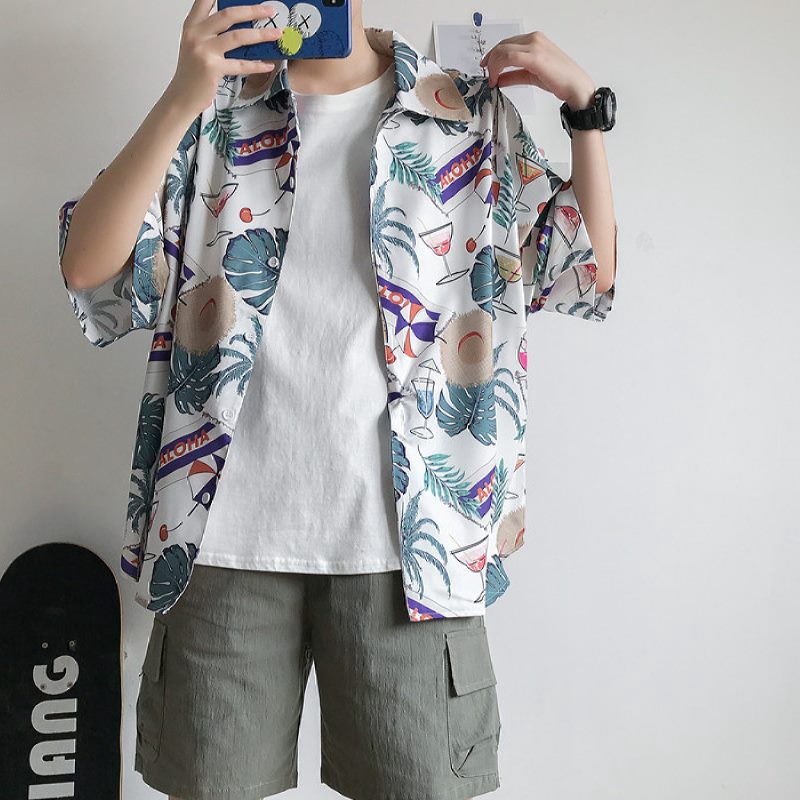 Kemeja Pantai Hawaii Casual Tipis Lengan Pendek Bahan Katun Campuran Warna Polos Untuk Pria - Download