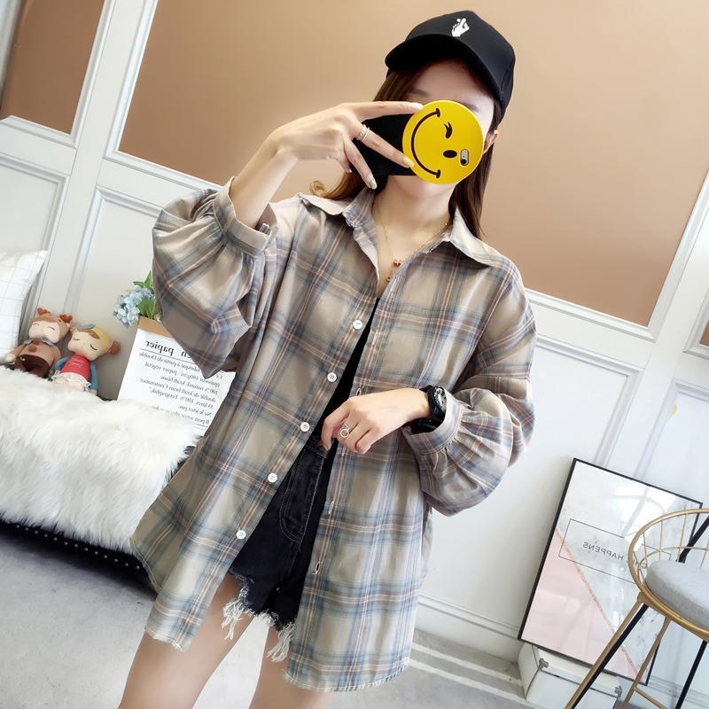 Koleksi Taobao Gaya Barat Kotak Kotak Kemeja Wanita Pasang Lengan Panjang Longgar Busana Musim Gugur 2019 Model Baru Gaya Korea Retro Chic Gaya Hong - Download