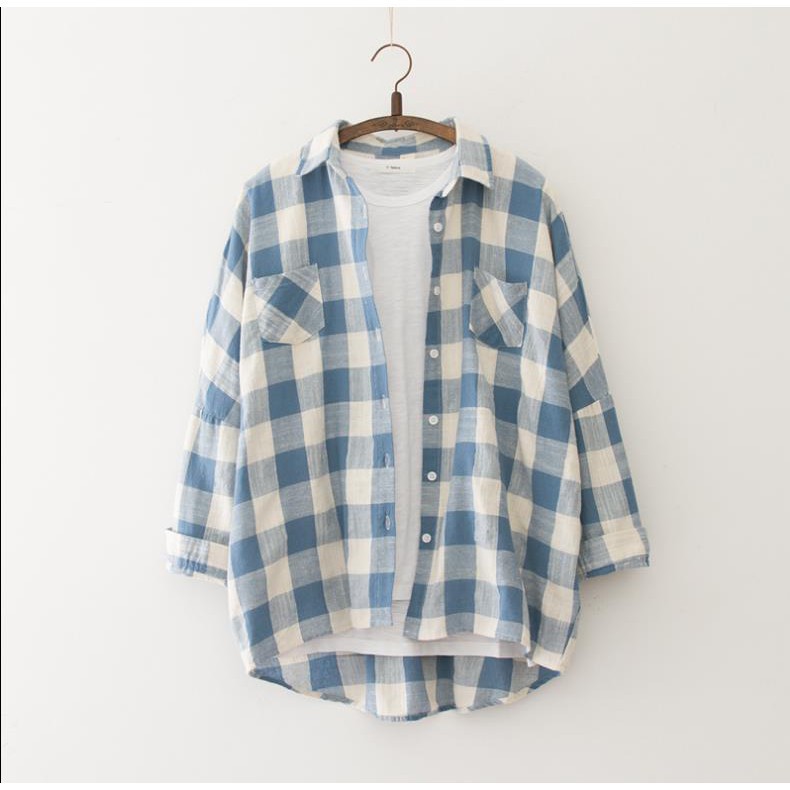 Kemeja Wanita Dengan Model Potongan Longgar Dan Motif Kotak Kotak Bergaya Retro Korea - Download
