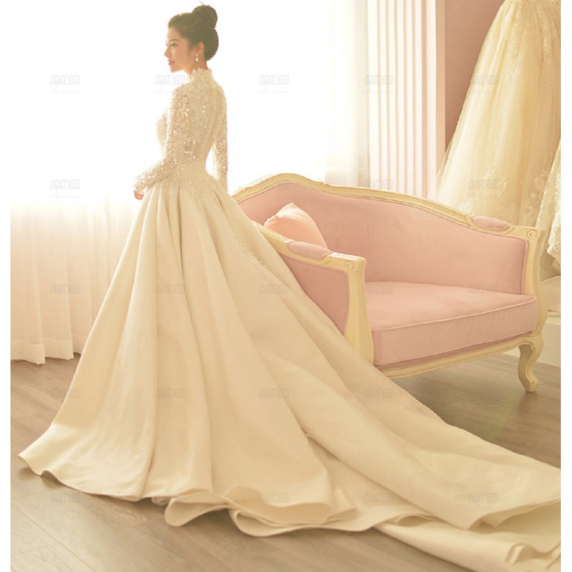 Beaunique Floral Beaded Sheer Long Sleeve Muslimah Wedding Gown Baju Pengantin - Download